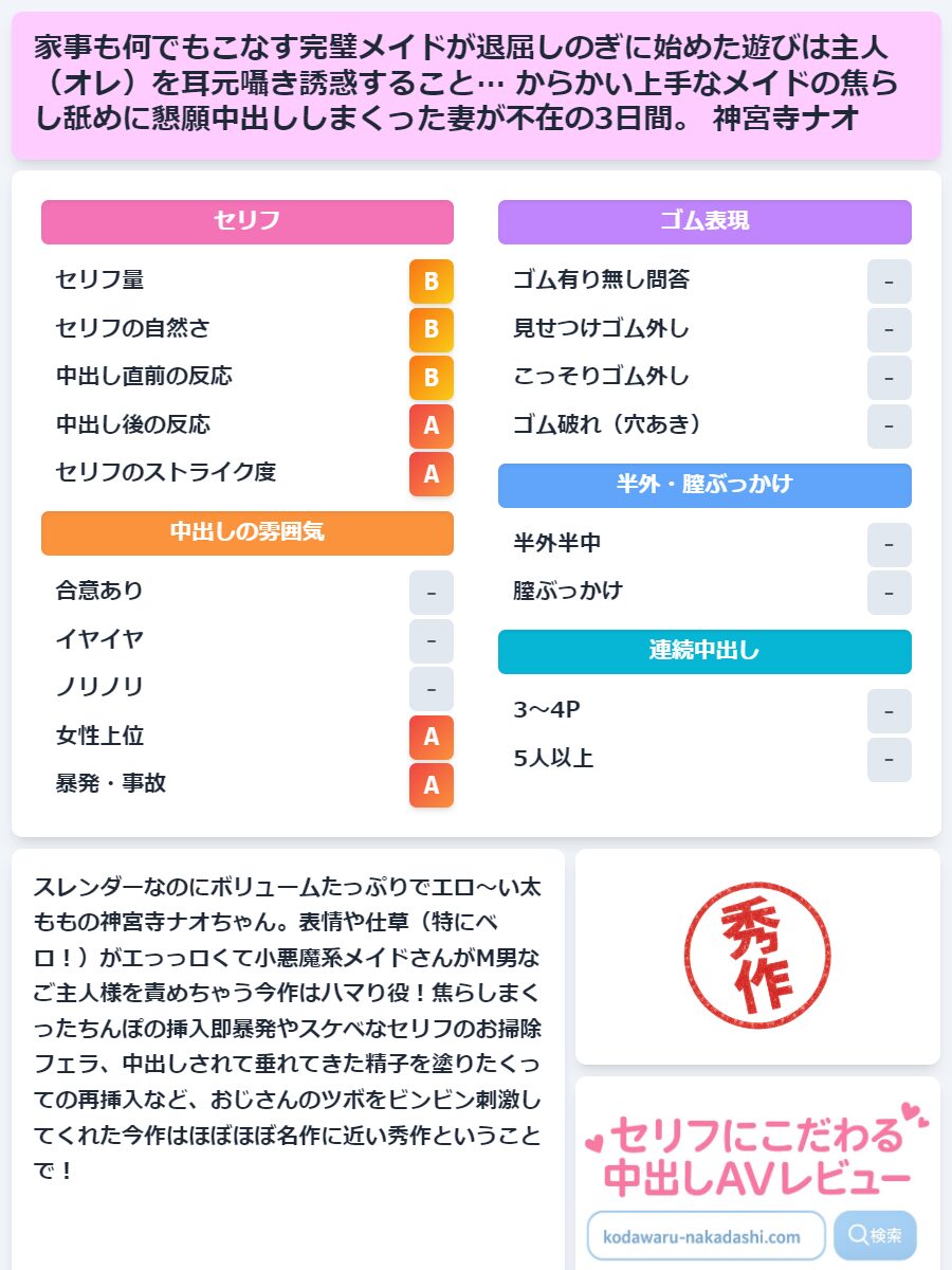 家事も何でもこなす完璧メイドが退屈しのぎに始めた遊びは主人(オレ)を耳元囁き誘惑すること… からかい上手なメイドの焦らし舐めに懇願中出ししまくった妻が不在の3日間。 神宮寺ナオ